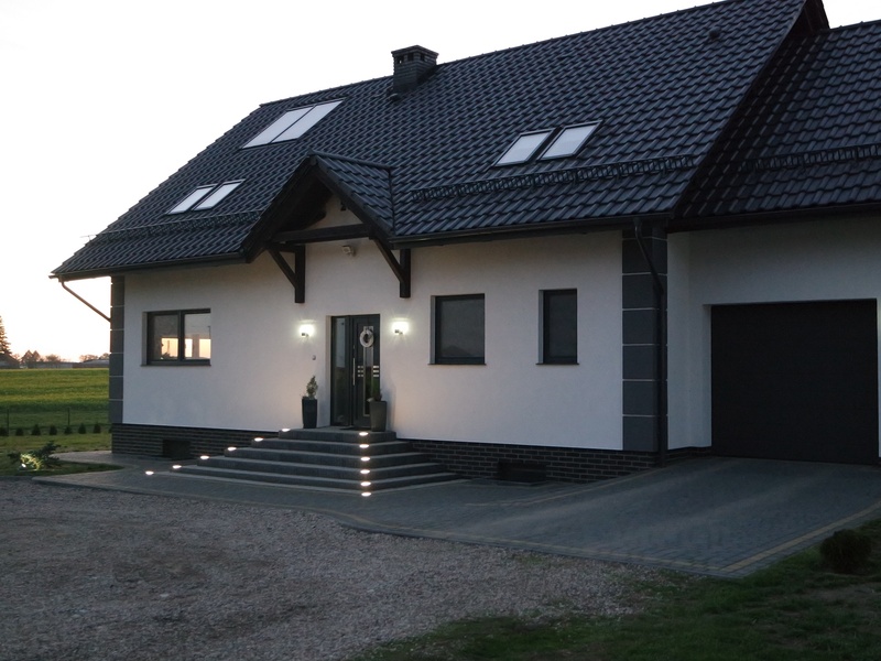 The rainwater is led to the pond (pipe arrangement). The garden is lighted up with LED lights. The house is connected to the town water supply and canalization.