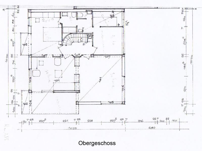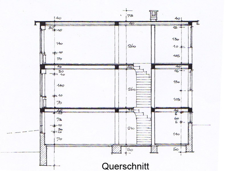 Sie besteht aus 3 Etagen, jeweils 110 m2 und wurde für zwei Familien entwickelt.