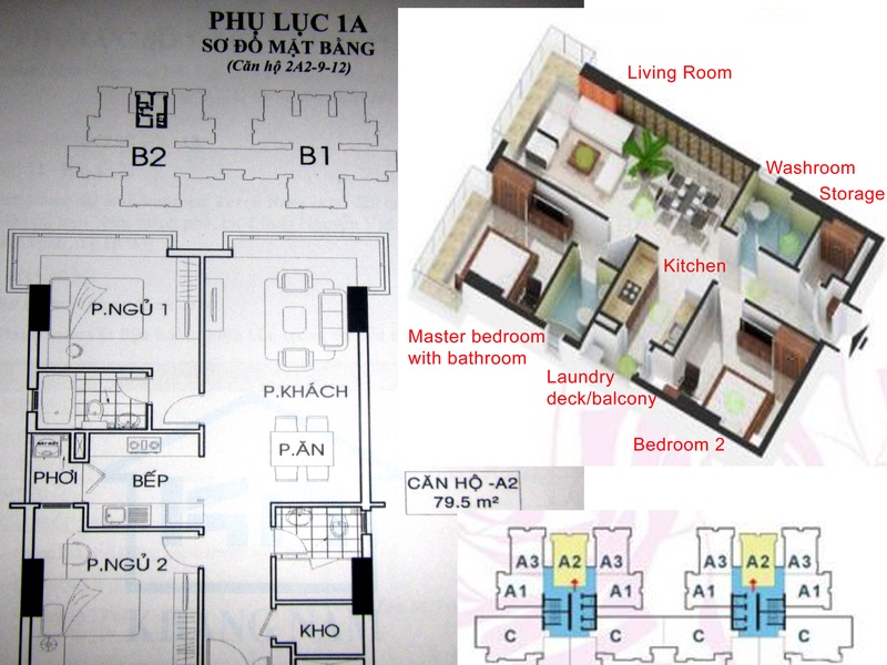 The unit area is 79.5m2, 2 bedrooms, 2 bathrooms, living room, kitchen. On 12th floor. For more details please visit http://lysatrieu.wix.com/terra-rosa