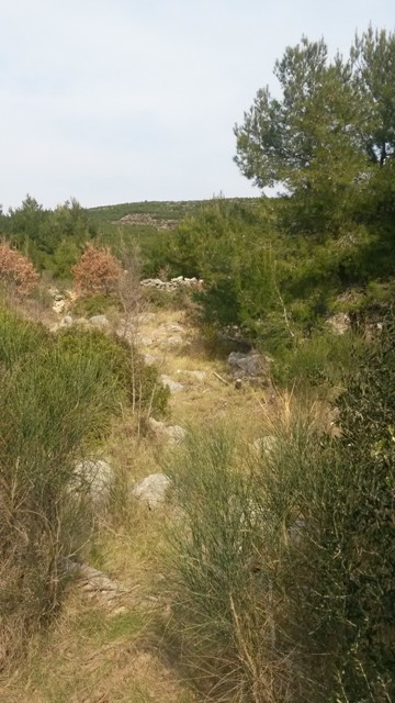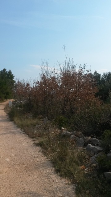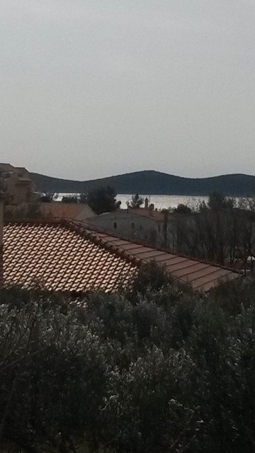 The plot in L-shape with its 1233m2 located below an unpaved road with good traffic connections. As enjoys a quiet but easily accessible area with views of the sea, which is about 500m away. The center of Tribunj is about 1.5 km away. Electricity and water connections are in the immediate vicinity. The house is a development proposal and is not included in the price.