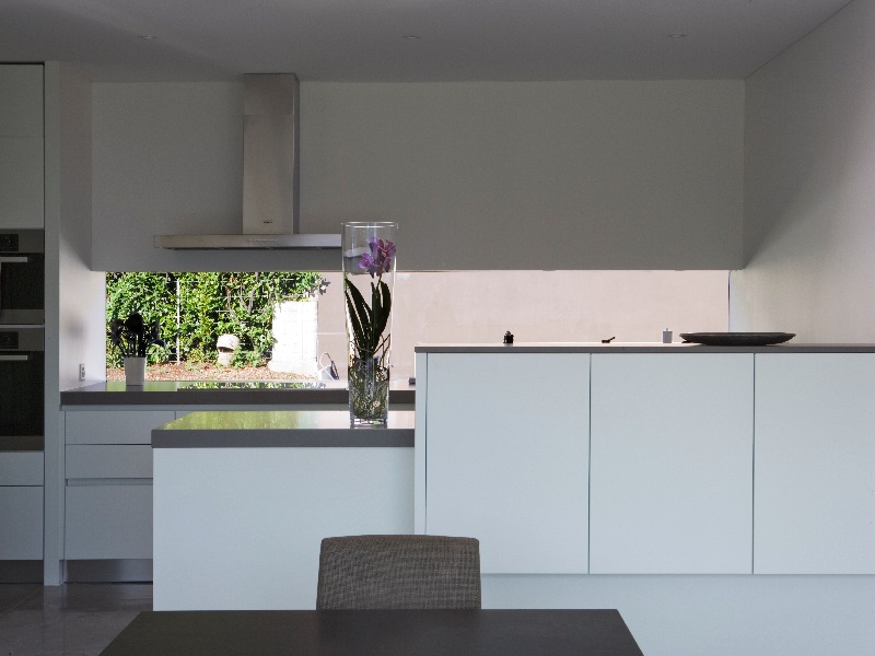 Level 2: large living room with dining area and semi open kitchen. The whole living area enjoys amazing views of the lake, exit to the terrace and the garden.