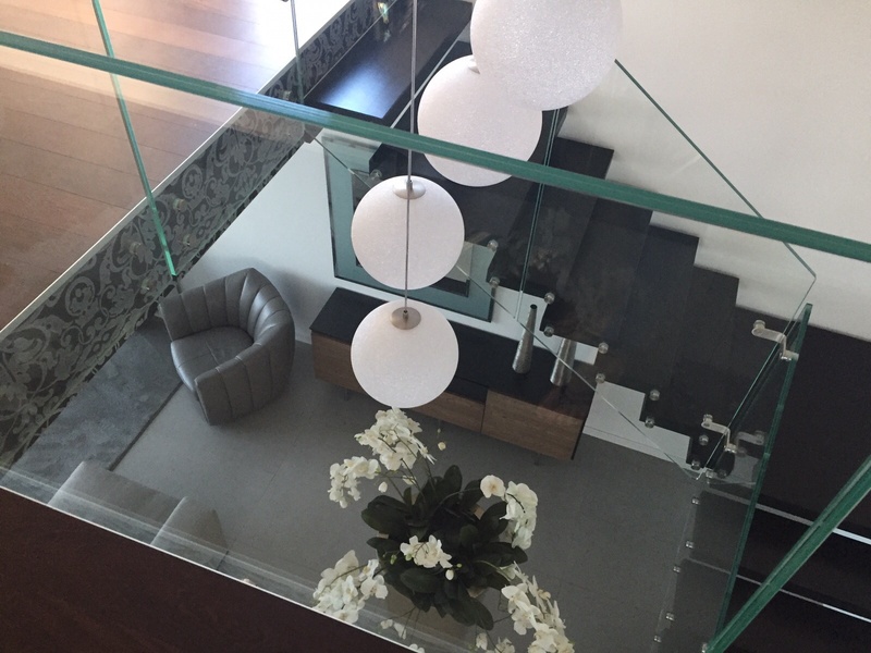 at street level, we find a large entrance hall with access to the lift and double garage.