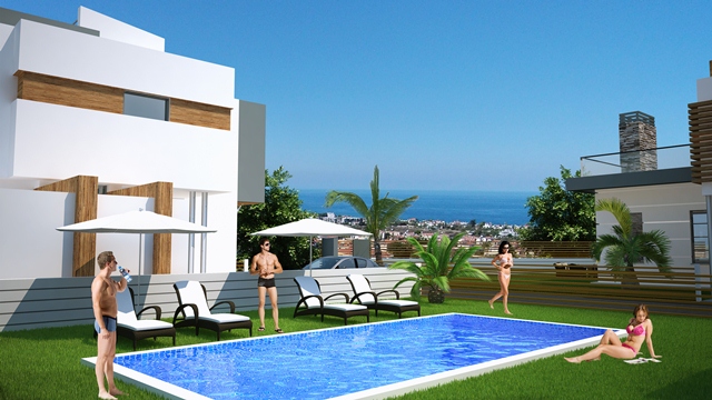 GREAT luxury villa is 5 minutes from the most popular beach of northern Cyprus in Alsancak Magnificent views of the sea and the mountains IF paradise on the earth it is Cyprus! • Area 230m2 • 3 bedrooms (1 bedroom downstairs) • 3 WC + bathroom (toilet downstairs) • fireplace • Upstairs magnificent terrace with barbecue • mountain and sea view • Indoor garage