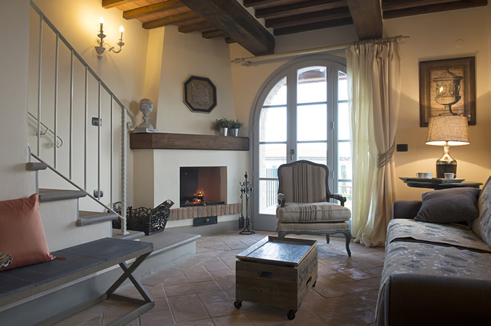 The Tuscan style architectural design preserved the spirit of the old country farmhouses using high quality materials combined with re-used objects, such as wooden beamed ceilings and terracotta bricks of recovery.