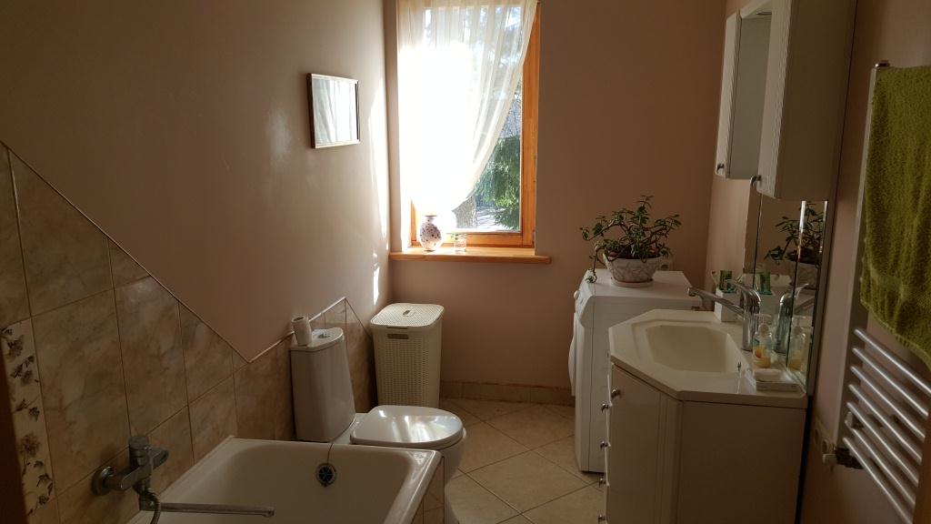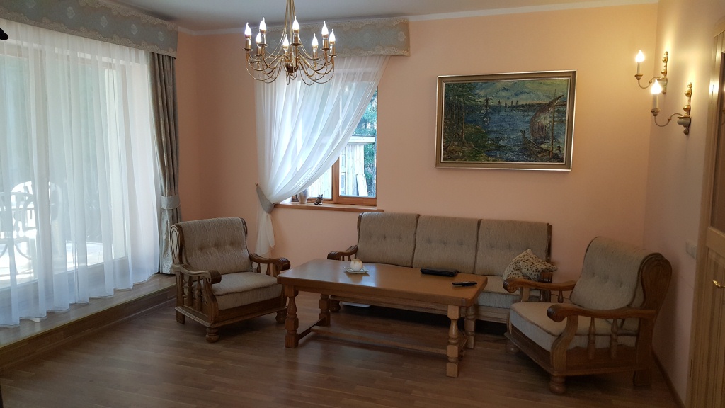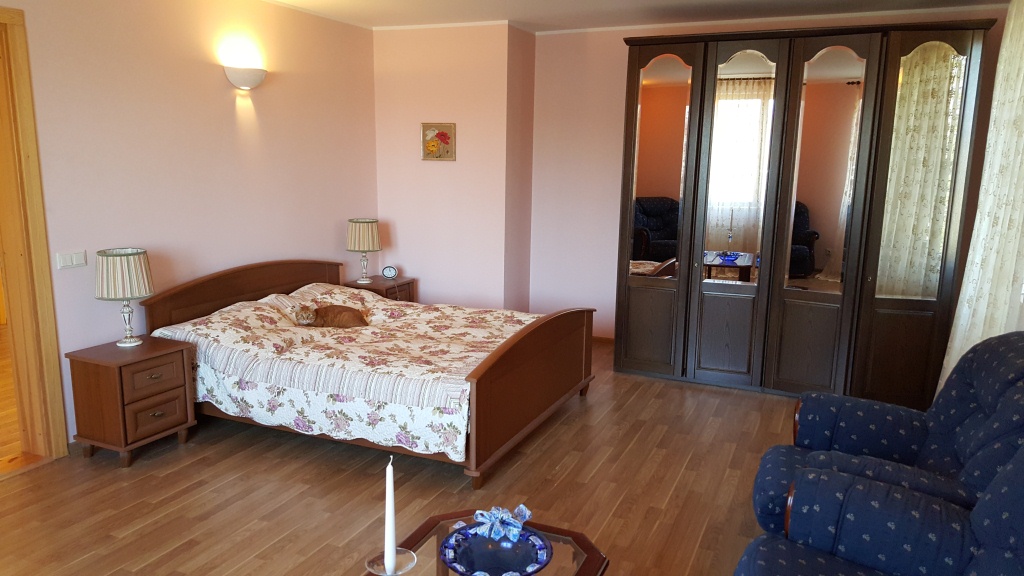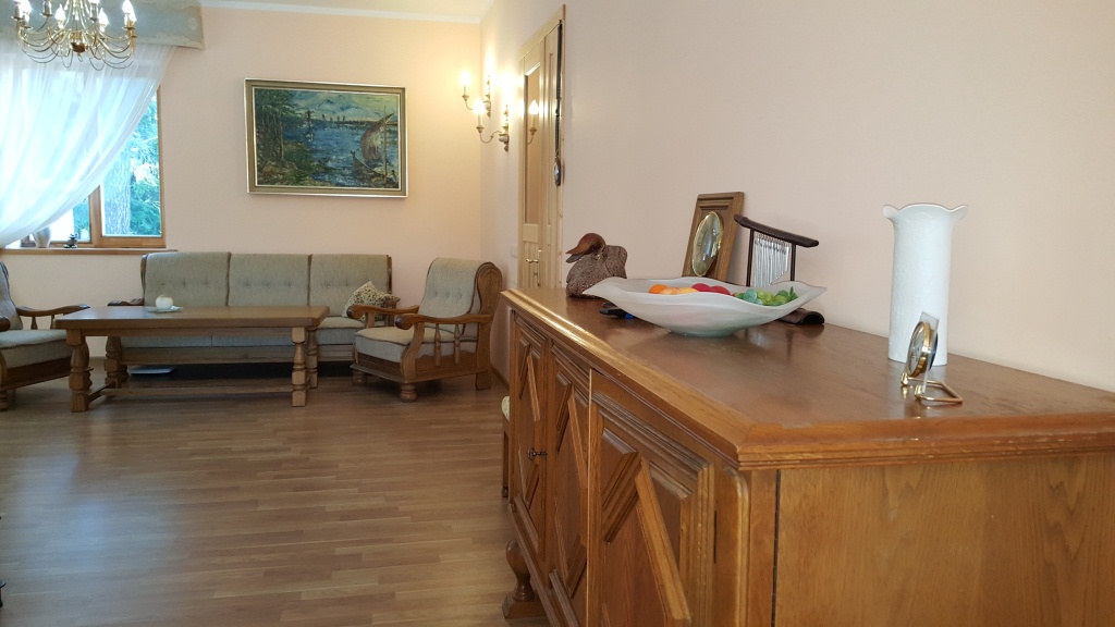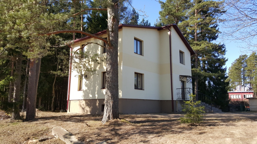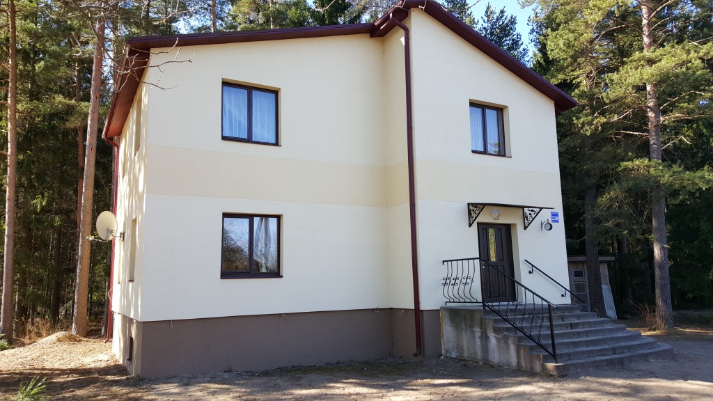 Quality winter house in a good place near a pine forest in Saulkrasti. On the ground floor an entrance hall, spacious living room with access to the terrace, kitchen and bathroom. On the second floorthere are two bedrooms and a WC. Under the house is a large basement, where there is a space for sauna. Very economical wooden boiler, modern bio-sewage system, water from barehole. Next to the store, near train station. Beach is about 2 km away. To Riga 40 km.