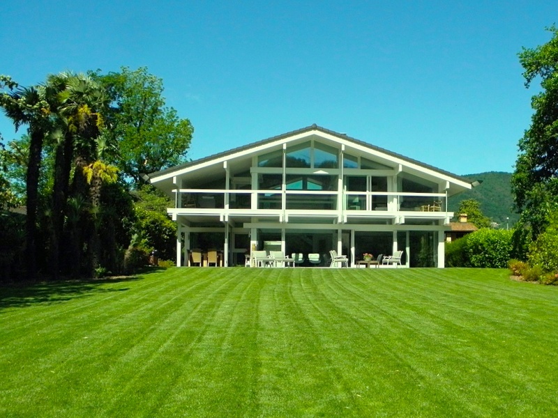 For sale modern villa near the lake in Magliaso, Ticino, Switzerland. Magliaso residential town situated about 15 minutes drive from Lugano and just a few minutes from Lugano Airport to Caslano or Golf Club. Malpensa Airport is less than an hour away. The villa is located in a quiet residential area on a large plot of 1900 m2 near the lake. Villa, modern building with exclusive wood and glass Huf Haus, is characterized by its transparency to the outside and inside of the side and has 330 square meters (10 rooms and 6 bathrooms). The owners have taken care of every detail, so aesthetically and functionally. The villa is on two floors and single-storey bungalow for guests or staff: between these two houses have a patio in the garden with olive trees more than 500 years. Premises are located as follows: Ground floor: • Large entrance hall • Living room with lounge, dining area, fireplace and access to the garden by the lake • Kitchen • Local study • Master bedroom with en-suite private bathroom • Bathroom with shower • Large utility room with fitted wardrobes . Ground floor • Wide gallery is open to the living room below and with access to the cozy covered terrace • bedroom with dressing room and bathroom • Master bedroom with large closet and a local spa with shower, sauna, steam bath. Bungalow: • Living room with kitchenette • 2 bedrooms, each with private bathroom • Technical room • Fitness room. The villa has 4 garage parking spaces and 6 outdoor parking. Large garden on the lake and has its own exclusive private dock. The price includes furniture. Price CHF 7'000'000