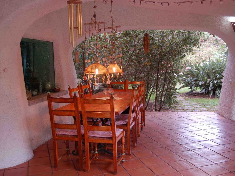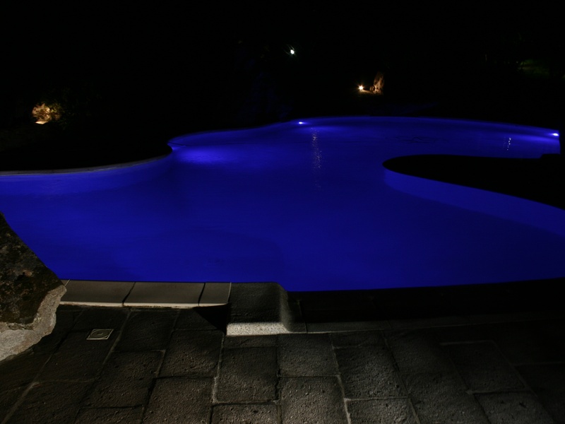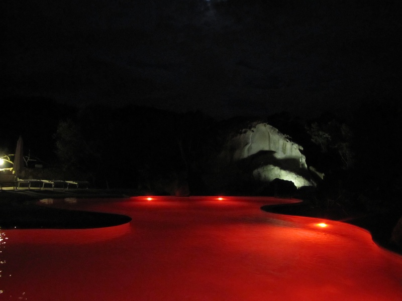 Our land of 18.000sm is completely fenced and you have access through two automatic gates that guaranties the maximum privacy. One the property you have five different locations, all independent and different in size and style. In the center of our well taken care of park is situated the stunning pool with its smooth shape, perfectly integrated in the surrounding nature. Each Villa has its own access to the pool. Here you can relax, listen to the outdoor music on the comfortable sun chairs or sit in the shade of the large umbrellas. The pool is equipped with a whirlpool area, swimming against current and a rock that is used as a springboard. If you care for a unique experience, let yourself massage by the water of the cascade. At night the water is illuminated by seven different colors / a perfect location for a romantic aperitif at sun down.