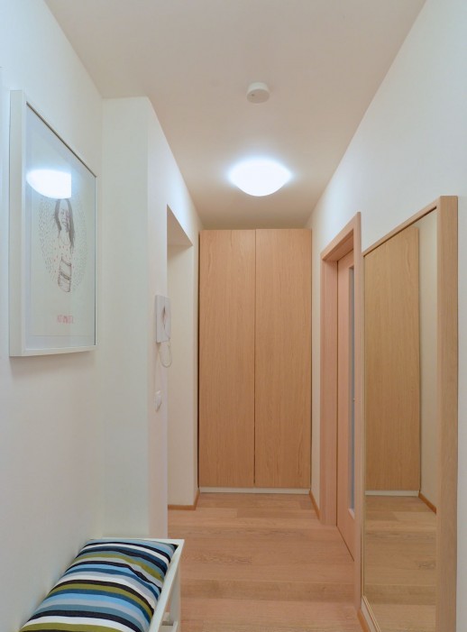 Оснащение квартиры включает в себя пол из выбеленного мореного дуба, который по цвету сочетается с дверями Sapeli и встроенным шкафом в прихожей, большого формата напольную и настенную плитку, новые реплики оригинальных окон с двойными рамами (идеальная тепло-звукоизоляция), белую лепнину. За дом вносится очень низкая плата. Парковка возможна прямо перед домом в «синей зоне» Праги 3, недалеко расположены и две «оранжевые зоны» для гостей.