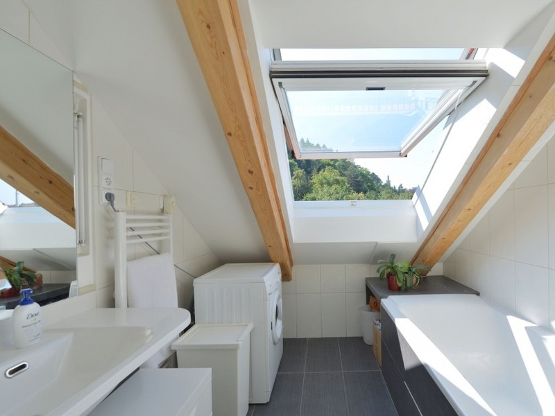 Квартира состоит из центральной прихожей, гостиной с кухней-нишей, двух спален, ванной комнаты с ванной и отдельного туалета. Оснащение квартиры включает климатизацию воздуха, «плавающие» полы, деревянные окна с жалюзи, уютную атмосферу подчеркивают сохранённые потолочные балки. Покупная цена включает в себя гараж и подвал.