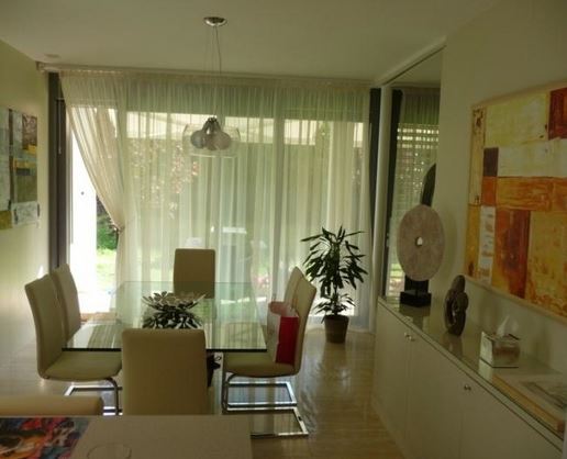 The internal design of the villa is with bright, uplifting colours; this coupled with the fact that the spacious living room has an access to the terrace which offers stunning views on the garden and surrounding countryside gives a bright and beautiful atmosphere to the villa.