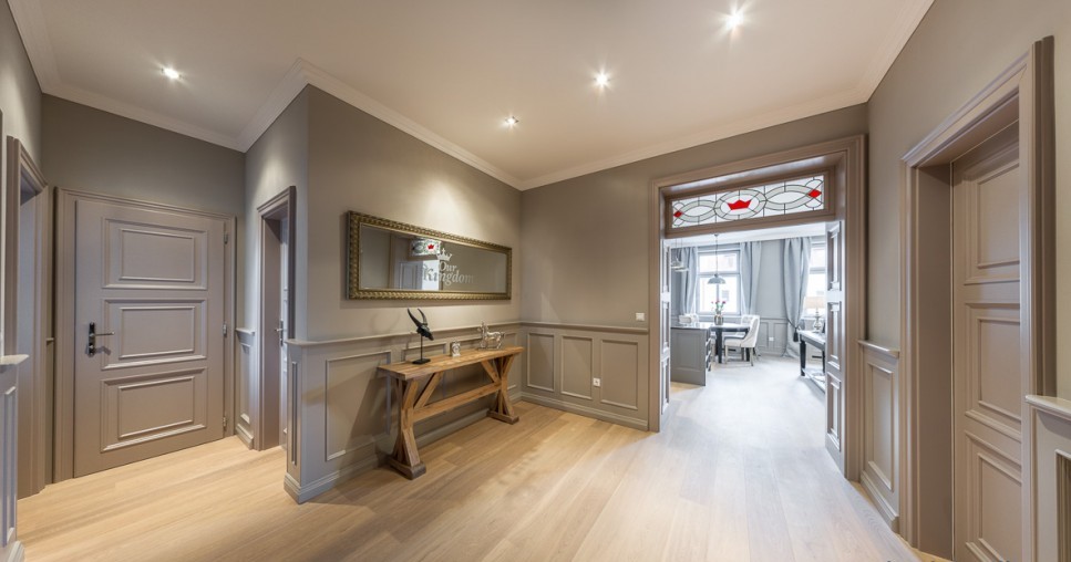 Оснащение квартиры включает в себя деревянный «плавающий» пол, керамическую настенную плитку, новые окна с тройным изоляционным остеклением и обналичкой окон с двойными рамами, новые деревянные кассетные двери включая дверные рамы, деревянные панели отопления и стен, полностью оборудованную кухню с гранитной столешницей, тропический душ и электрическое напольное отопление в ванной комнате, дизайнерское освещение, сигнализацию, индивидуальный газовый котел. Квартира частично меблирована новой мебелью, кухонный гарнитур, встроенные шкафы и обаличка были изготовлены по специальному заказу. В доме есть лифт.