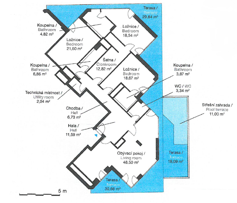 www.abrupt.ru Продается просторная квартира с 79 м2 террасой, расположенная на 4-м этаже закрытого жилого проекта с частным парком, 24-часовой рецепцией, парковкой, службой охраны и кафе. Квартира находится в непосредственной близости с парком Парукаржка (park Parukářka).