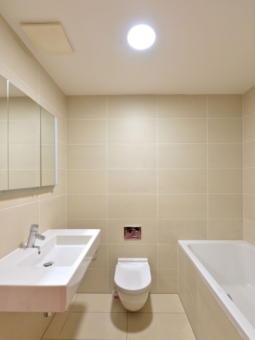 В квартире имеются деревянные полы в главной жилой части, большого формата напольная и настенная плитка в ванных комнатах, полы с подогревом, современный кухонный гарнитур и встроенные шкафы. Покупная цена включает в себя 2 парковочных места в гараже и подвал.