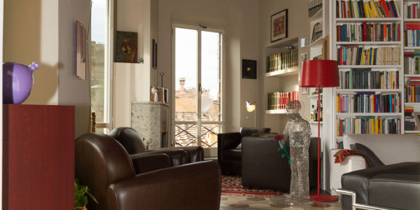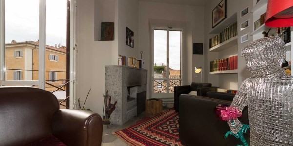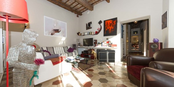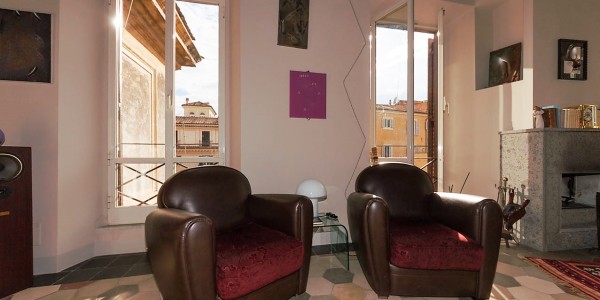 For sale Luxury apartment renovated in the historic center of Rome, Italy. In one of the most beautiful areas of the capital, a luxury apartment on the top floor of an old building with a lift (just installed). The apartment is 200 square meters 5 bedrooms, 2 bathrooms, 3 bedrooms renovated prestigious materials, but still allows you to rearrange the interior space to your liking. In this configuration, a long corridor, is the entrance and leads to the first living room. Furthermore, a bedroom with a bathroom and a covered balcony is accessible from the corridor. From the first room, two corridors along the entire length of the house, including the kitchen, dining room and guest bathroom. Master bedroom with bathroom and dressing room. The second living room is down the hall and through the double wall has an unforgettable view over the surrounding rooftops and strong light thanks to large windows. The last reconstruction was able to combine the use of new materials with old characteristic features such as high ceilings with wooden beams. It has central heating, and a comfortable and dry cellar.