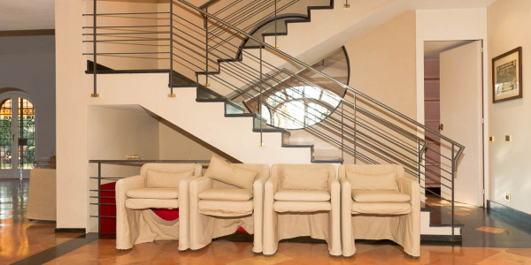 For sale prestigious luxury villa on three levels in Oldzhiata district, in the province of Rome, Lazio region, Italy. Large villa in 1035 square meters on three levels in the exclusive Olgiata area, a few minutes from Corso Francia, with the security service, golf club, equestrian center. The villa has a private park of 10,000 square meters with a fountain and a swimming pool surrounded by sun patio, all three levels of the villa are connected internal elevator. On the ground floor there is a bed and bathroom, two utility rooms with private bath, laundry / ironing, and three rooms for use as a dressing room. The first level consists of a living room, kitchen, bathroom for a hobby, two bedrooms and two bathrooms. The second floor consists of a large entrance with a dressing room and a bathroom for guests, a cozy lounge, Double room with fireplace, a library and an office, two suites with bath, large kitchen with dining area. At the third level there Manor room with fireplace, two dominant terrace, bathroom, loft with a fireplace and a balcony overlooking the living room. Furthermore, there is parking machines 5, sophisticated security system, a powerful air conditioning and electric generator.