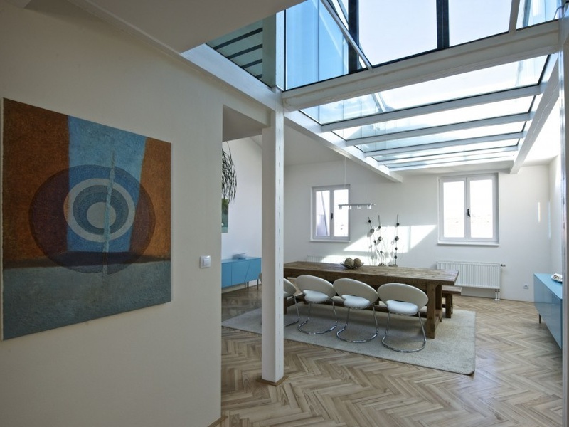 www.abrupt.ru    Продается просторная двухуровневая квартира с террасой, откуда открываются панорамные виды на Прагу, включая Пражский Град. Квартира находится на 6-м и 7-м этажах современной резиденции с рецепцией в сердце Королевских Виноград (Královské Vinohrady), в нескольких минутах ходьбы от площади Мира (náměstí Míru) с отличным доступом к центру города.