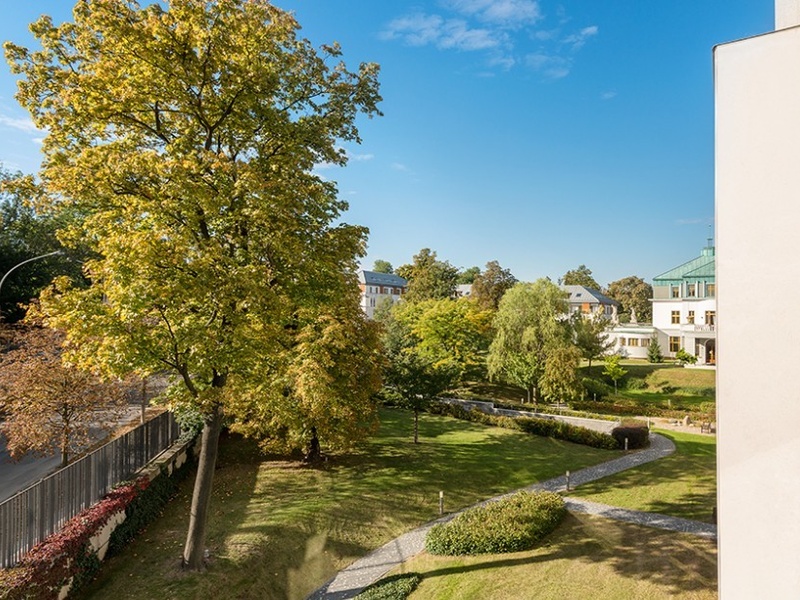 Закрытая резиденция со взрослым английским садом и небольшим прудом находится в престижном районе пражских Дейвиц (Dejvicе), в нескольких минутах ходьбы от станции метро и с легким доступом к центру города и до аэропорта Вацлава Гавела.