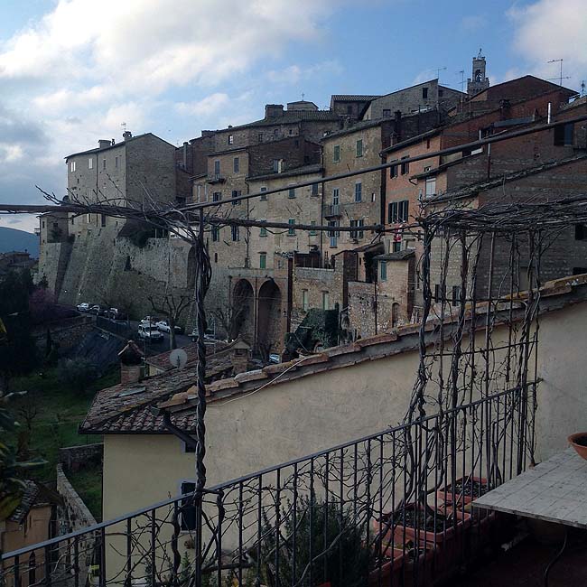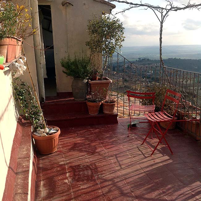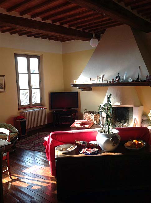 During the Middle Ages the building was used as a hospital and was transformed and renovated by the actual owner. It is located on the first floor of an antique two-storey building. It comprises 1 broad living room equipped with a fireplace, 1 kitchen, 3 bedrooms, 2 bathroom of which one serves the master bedroom , 1 study room and 1 utility room used as launderette. From the living room stairs you can reach the terrace. From the terrace you can enjoy a panoramic view over both the centre of the town and the valley, From Cortona to the Trasimeno lake. If the day is particularly clear you could even see the Majella mountains.