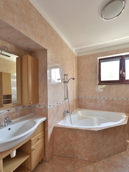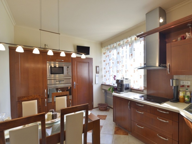 В каждой квартире есть большая прихожая, полностью оборудованная кухня, кладовая и ванная комната (2-х уровневая квартира имеет ванную и на 2-м этаже). Весь дом имеет деревянные полы и деревянные окна. Под всем домом находится подвал, а на первом подземном этаже можно соорудить сауну, фитнес, или же общественное помещение с бильярдным столом. И здесь имеется отдельный туалет. Наверху находится чердачное помещение. В саду есть автоматическая система орошения с собственным колодцем, а ворота с автоматическим открытием. Садовый домик с прилагаемым гаражом на две машины и еще два парковочных места на участке.