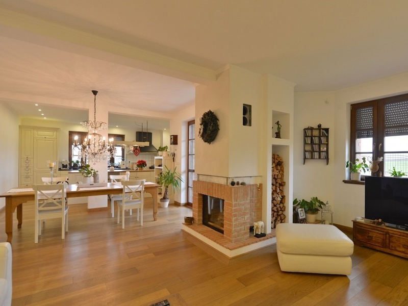 Первый этаж дома состоит из гостиной с камином, кухни и французскими окнами, ведущими в сад, далее домашнего кабинета/спальни, ванной комнаты с ванной, душем, двумя раковинами и туалетом, а также прихожей, через которую можно пройти в гараж на один автомобиль. Верхний этаж состоит из 4-х спален, ванной комнаты с ванной, душем, двойной раковиной и туалетом, а также лестничного холла. Оснащение дома включает в себя массивные деревянные полы, деревянные окна и межкомнатные двери, полностью оборудованный кухонный гарнитур, центральный пылесос Husky, систему безопасности, половое отопление тепловым насосом. В саду размещены подогреваемый бассейн RivieraPool и резервуар для дождевой воды объемом 13 м3.