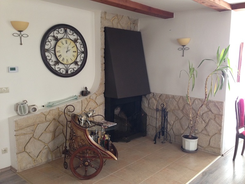 Далее, по удобной широкой лестнице поднимаемся на второй этаж, где находится санузел с душевой кабинкой и три комнаты- большая спальня 17,6 м2 с балконом 10 м2, открывающим вид на столетние сосны, меньшая комната 16 м2 и спальня 27.5 м2 с собственной ванной комнатой с джакузи и небольшим балконом 2.5 м2 с видом на лес и долину. На этом этаже оборудована прачечная, вмещающая в себя стиральную и сушильную машины и склад моющих средств и разных мелочей, необходимых в хозяйстве.