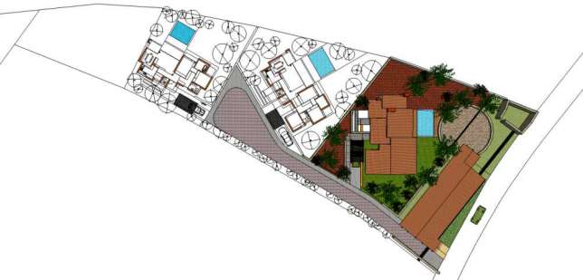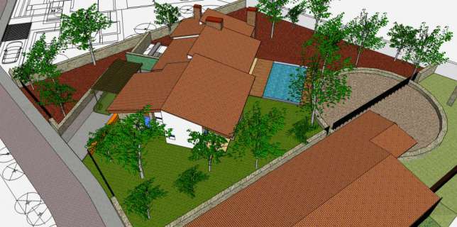 It was ordered to be drawn up by owners to submit a preliminary study of architecture, based on a 3D simulation as urban settlement hypothesis of 3 detached villas with swimming pool (two T4 and T3) of approximately 850m2, 660m2 and respectively area of 1100m2, common areas (970m2) consisting of street layout / access / tours, garages and support, for a gross floor area of 515,00m2 of 1.850,00m2 allowed.