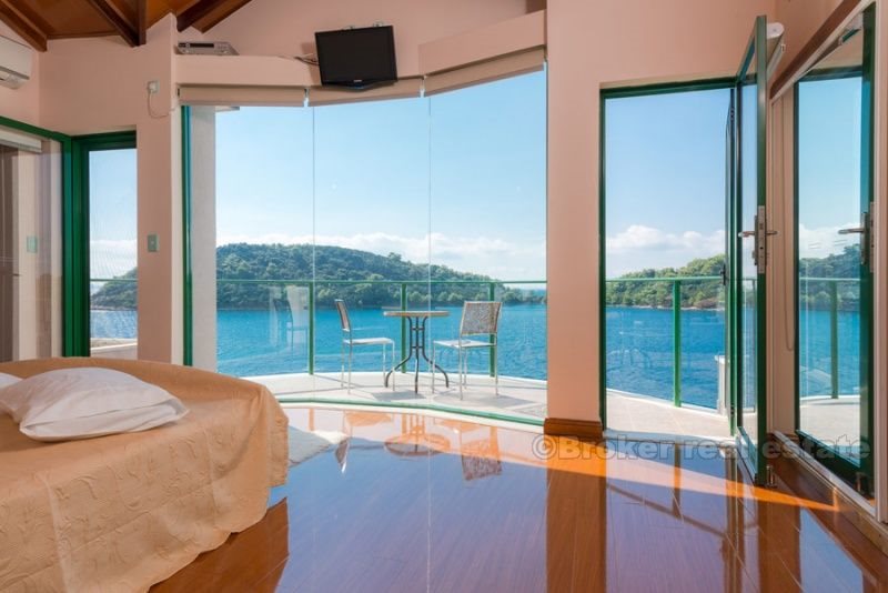 For sale a beautiful modern villa on the island of Korcula on the Adriatic Sea, in the southern part of Croatia, near the Dalmatian coast. This beautiful villa was built in 2009, it is located on the south side of the island of Korcula. The total area of the villa is 400 square meters, the land area is 635 square meters. The villa consists of 5 bedrooms. The villa is located first line to the sea, just 15 meters from the beach and the sea.