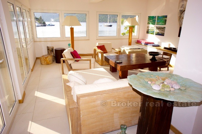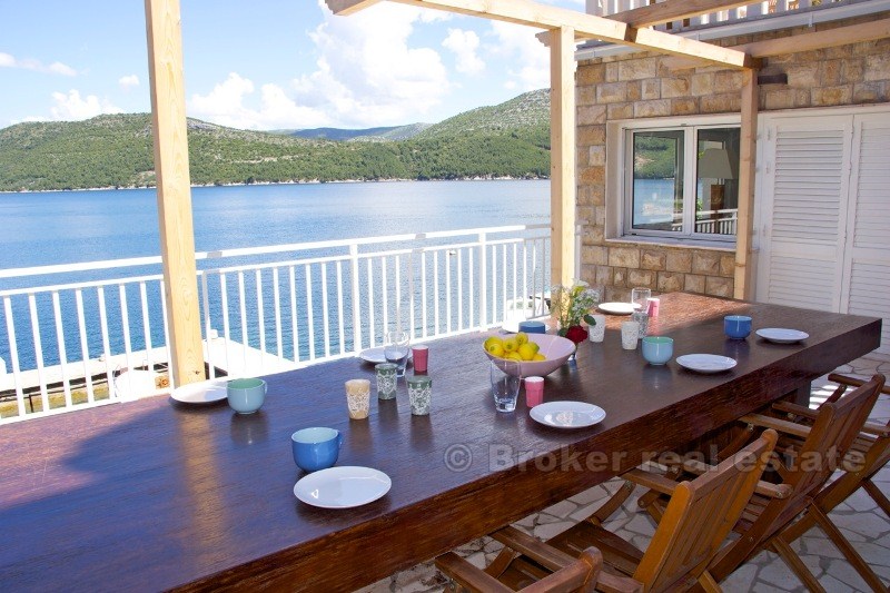 Villa for sale on the peninsula Peljesac, in the southern part of Croatia, having a length of 70 km and a width of 3 to 8 km. Villa in the first row by the sea, in a unique location with incredible views of the sea. Just 2 meters from the sea! The living area of the villa is 450 square meters, consists of 4 floors, 7 bedrooms, 5 bathrooms. The land area is 600 square meters.