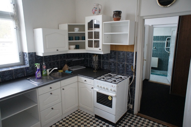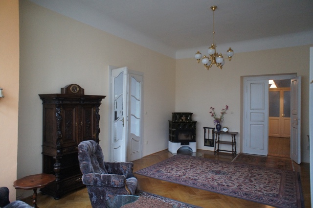 В очень красивой вилле на севере Чехии продаётся четырёхкомнатная квартира на втором этаже. Общая площадь - 132 квадратных метра. Отопление квартиры производится газовым котлом. И дом, и квартира в отличном состоянии. В квартире новые распределители воды и электричества, качественные деревянные полы. К ней относится часть чердака и подвальное помещение. Парковка перед домом, можно купить один или два гаража. Квартиру можно купить с мебелью или без. Цена - 4 900 000 крон.