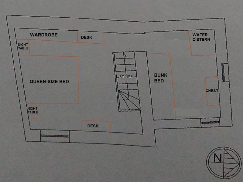 Trough a beautiful stairway you reach the upper floor ; The floor is used as sleeping area: in fact there's a large bedroom with queen-size bed, and a smaller bedroom with a bunk bed. Both rooms have oak-beamed ceiling and wood flooring. On the upper floor there is also a cistern for water (which comes from a fountain not far from the house - serves as a water-system).