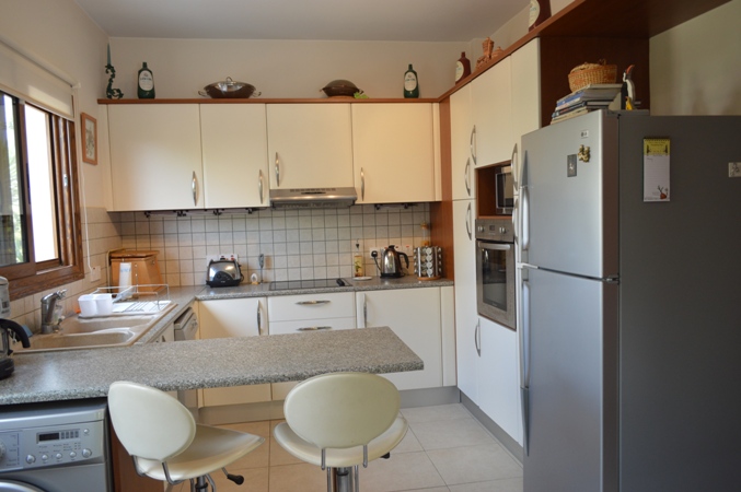 При входе в дом сразу направо находится L-образная Гостиная/столовая.  Налево – лестница на второй этаж и туалет.  Просторная открытого плана кухня укомплектована всей необходимой мебелью и современной бытовой и эл. техникой.