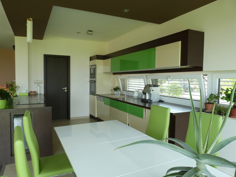 The property is for sale furnished and its price is included in the purchase price. The living room has custom-made, leather seating for 12 persons, the lobby also features an - opening - leather sofa, and the bedrooms are equipped with double beds or children’s beds. Both wardrobes are fully furnished.