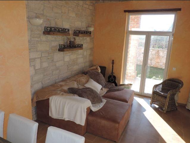 This beautiful stone house was designed with great attention to detail. A hallway with guest restroomopens up the floor and up the stairs to the upper floor and down into a tavern. A bedroom with en suite bathroom and separate terrace, which can also be very well used as an office. The spacious living and dining room has an impressive ceiling height of about 3 m and combines this with a warm, Mediterranean atmosphere and a fantastic view of the sea in the west. Eyecatcher is the big, beautifully designed, open fireplace light sandstone. The integrated kitchen in French country style is fully equipped and offers plenty of storage space. The entire living and dining area is surrounded by covered terraces. A generous staircase with large window to reach the upper floor with a total of 3 rooms. The master bedroom has an en suite bathroom, a dressing room and a small balcony. The other 2 bedrooms share a bath and go to a large covered balcony overlooking the sea. The bathrooms combine skilfully elements of country style with elegant Italian design and tile. Unusual lamps and chandeliers on walls and ceilings emphasize the Mediterranean atmosphere and in conjunction with crown molding and warm, earthy color schemes created a wonderful atmosphere to relax. All rooms have a magnificent view of the Istrian countryside and the sea. Equipment * Plot completely surrounded by a high stone wall, with electric entrance gate * Alarm and video cameras * Internet connection with 4 MB and WIFI * LAN instalations and satellite antennas in all rooms * Air conditioning (hot and cold) * Central underfloor heating with solar / electric * Energy efficiency class A * Swimming pool with Jacuzzi can be heated by solar * Tavern in the basement with fireplace and kitchenette * Barbecue house as a summer kitchen with fireplace * Autom. Irrigation * Furnished incl. washing machine The property offers panoramic sea views and is located approximately 20 minutes from Porec and Vrsar near Baderna between olive groves and grapevines. Baderna and its surroundings offer the shopping, great restaurants and bars. The basement has been created as a tavern and decorated with old oak beams and roof tiles and attention to detail. An open fireplace, spacious seating areas and a kitchenette a convivial evenings in a cozy and rustic atmosphere, a small wine cellar and a toilet. The high-quality tile floors in wood design and bright veins stretch stylistically through the whole villa and the terraces. The outdoor area with large swimming pool and Jacuzzi is surrounded by natural stone slabs and lawns. A barbeque house with fireplace and summer kitchen is another attraction. The plot is fenced by a high stone wall with integrated lighting and has an electric wrought iron gate. In conjunction with a harmonious shade gives a good view protection and privacy to relax.