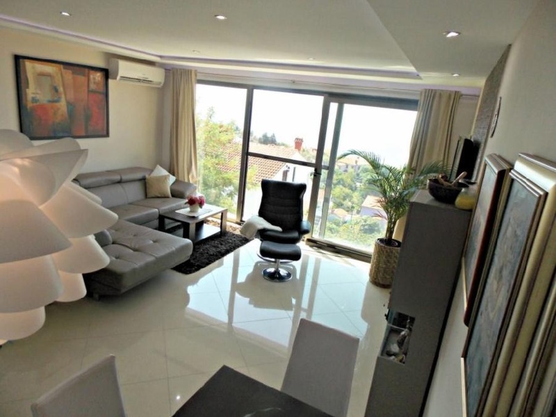 The building is brand new and completely made of quality materials. The apartment is equipped with designer furniture. It is located in a modern urban villa in an elite location with a beautiful view of the sea, Opatija and Kvarner. The building has only three apartments, and was carried out in accordance with the highest standards of construction. It has two parking spaces, a specialty property has a private garden of 187 m2. According to the structure, it is a flat with a kitchen and dining area which are open space connected to the living room from where extends an open view to the sea, and from which exit to the garden. Large windows and a fantastic view of the Kvarner Bay will make enjoyable every moment spent at home. The apartment consists of two bedrooms, 3 washrooms, utility room and fully equipped office space on the ground floor. Mentioned space can also be used as a functional studio apartment. Interior provides transparent, free, easy and carefree life, it is functional and provides its occupants in every segment glamorous stay. Private garden is made in the combination of traditional and modern style that matches the environment in which the house is located. Harmonious garden will certainly complement the exceptional quality of life, privacy and peace. The apartment is equipped with underfloor heating systems through heat pumps in combination with solar panels for hot water. Heat pump provides heating, cooling and domestic hot water. This type of heating is achieved maximum comfort and minimum energy consumption. There is a possibility of heating with underfloor heating, as well as by means of a valve. The outer insulation of the building is worked out with 12 cm polystyrene insulation. The quality of installed equipment and materials has resulted in the classification of energy efficiency class A + - See more at: http://arka-realestate.com/en/real-estates/?n=545#sthash.oultgwxh.dpuf