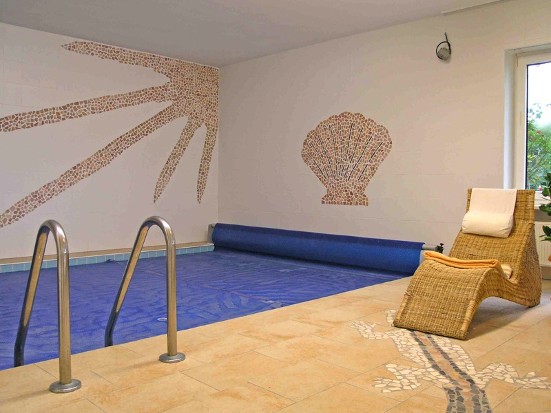 The indoor pool measures 3.70 x 6.80 x 1.60 m. The solid wood sauna of WEKA is heated through a bio - operated steam generator.