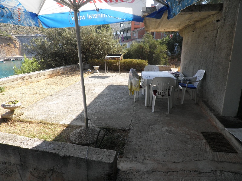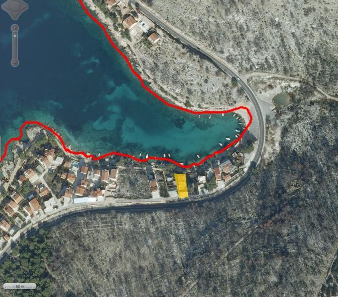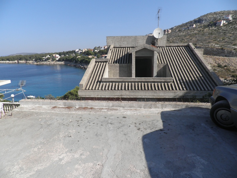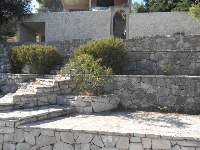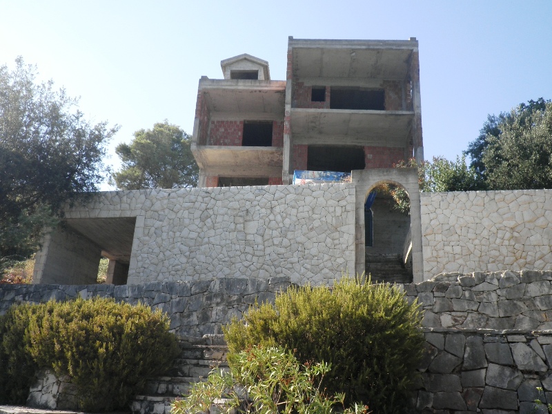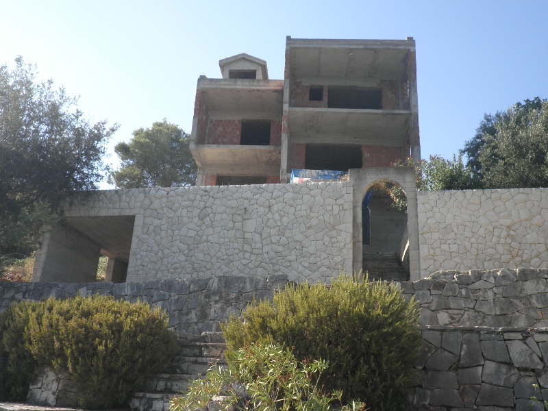 The basement includes a 20m2 garage (for a boat). Nice boundary stone wall is found along the lower plot boundary towards the seafront; a nice and decorated beach is right in front of the house, as well as boat mooring. The ground floor consists of 90m2 of living space, planned with a 12m2 terrace with a wonderful sea view. The first floor has 140m2 and 12m2 terrace. The attic also has 140m2 of living space with aslope concrete slab. The building permit has been obtained in 1994. All terraces offer superior sea view. On top of the terrain is a basement building under the slab which is decorated and can be used as living space, on the slab of this object is a parking space for 5 cars. The plot consists of 470m2. Price: 400.000 Euros.
