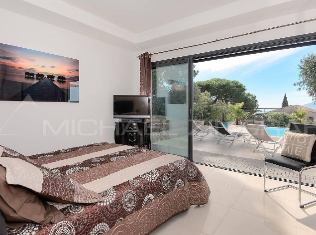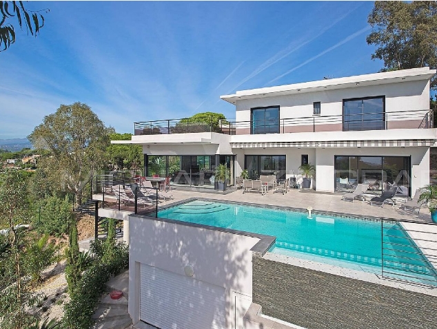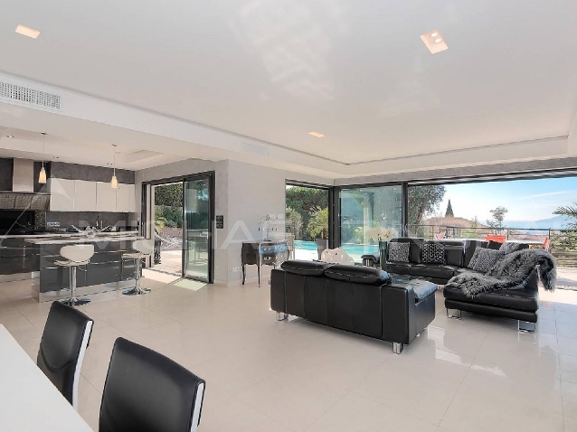 Modern villa in the heart of a quiet residential neighborhood near the residential area of 270 sq.m. There is a living room with a terrace, an open fully equipped kun, master bedroom with dressing and bathroom. On the first floor: 4 bedrooms-suite with a / v and access to the terrace, laundry room. Infinity Pool 8x4 m. Uhoezhenny picturesque site. 5 local garage.
