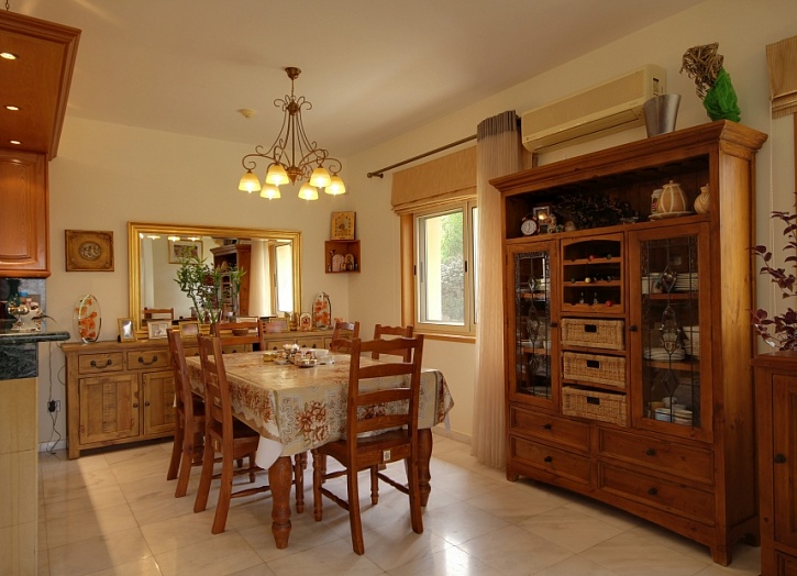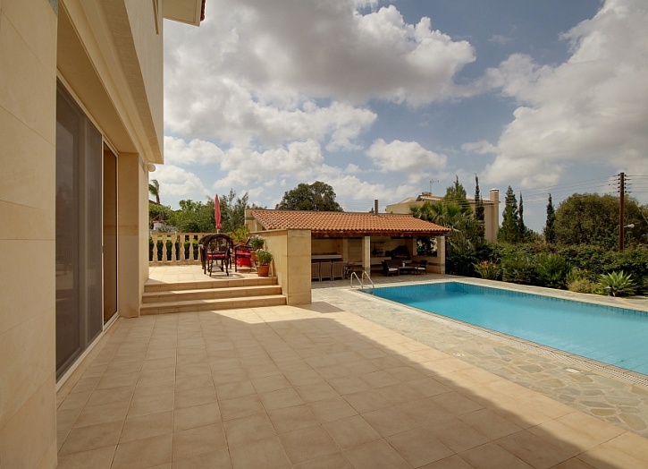 Бассейн перед домом 12 х 5 м – переливной, с песчаным фильтром, подсветкой и подогревом. Рядом с домом имеется площадка для барбекю и летняя кухня, сад с фруктовыми деревьями, цветами и декоративными кустами.