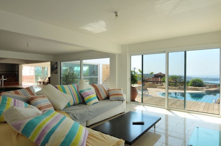 Каждая комната виллы имеет большие окна с панорамным видом на море.