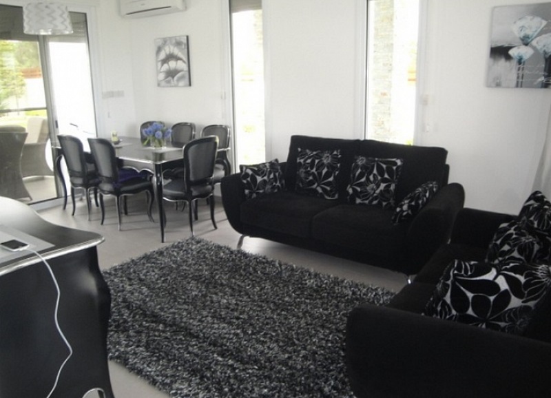 На двух этажах дома размещены: просторная гостиная, изолированная современная кухня с оборудованием Miele, гостевой туалет, ванная комната и 3 спальни (одна из спален с индивидуальной ванной комнатой). Дом обставлен современной испанской и итальянской мебелью, оснащен необходимой бытовой техникой.