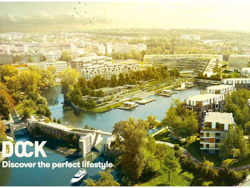The complex consists of both residential and commercial premises. The residential complex includes DOCK RW I, RW II, RW III, as well as DOCK Marina, located on a private peninsula. Each house has an underground car park with direct access to the elevator, as well as individual storage rooms. Apartments on the first floor have their own plots of land enclosed by a fence and vegetation. Moreover, almost all of the apartments have balconies and terraces with wonderful views of the water and the greenery.