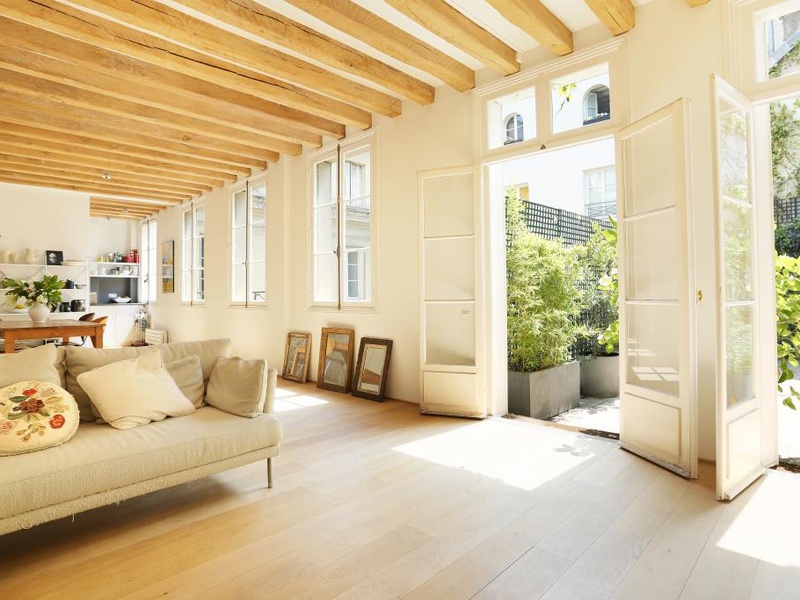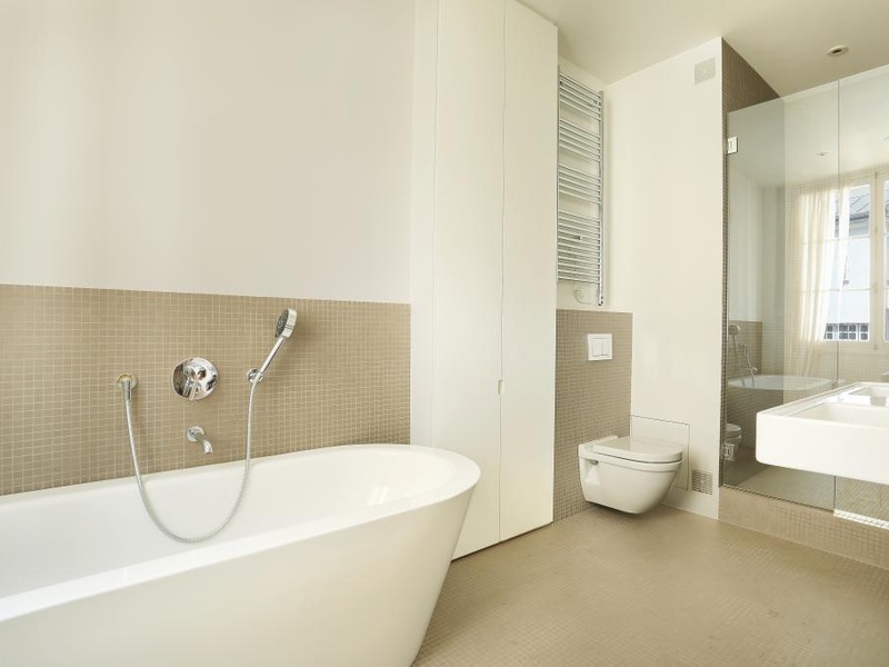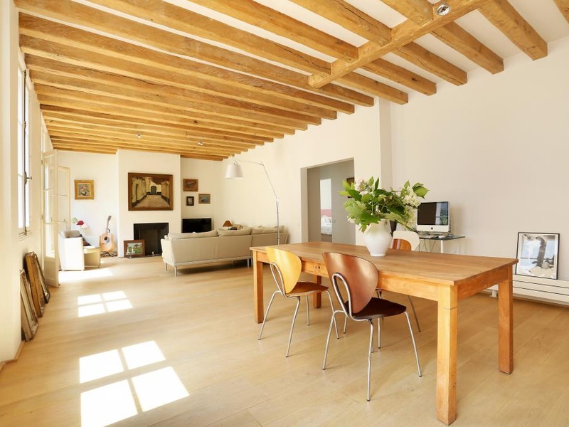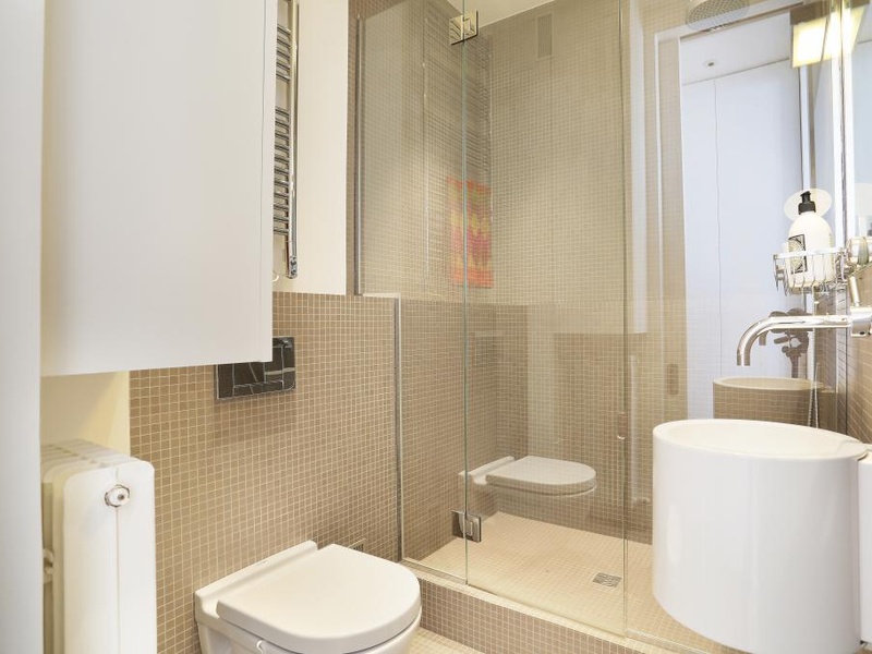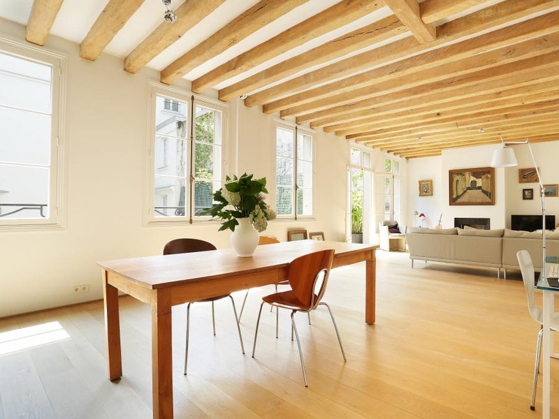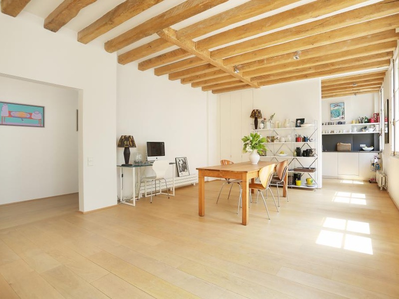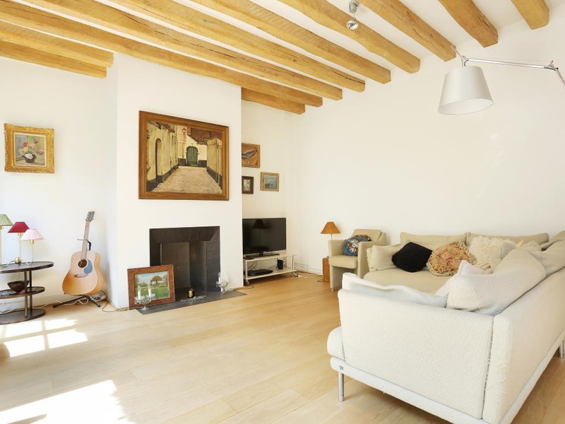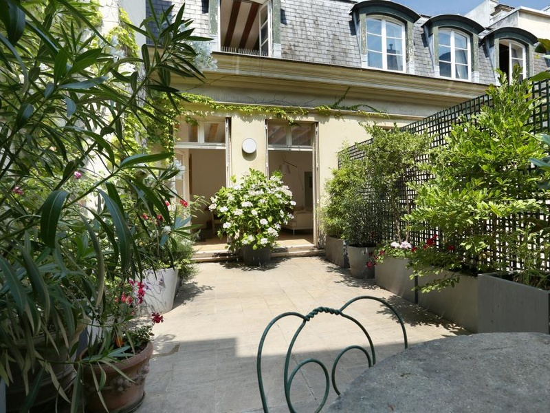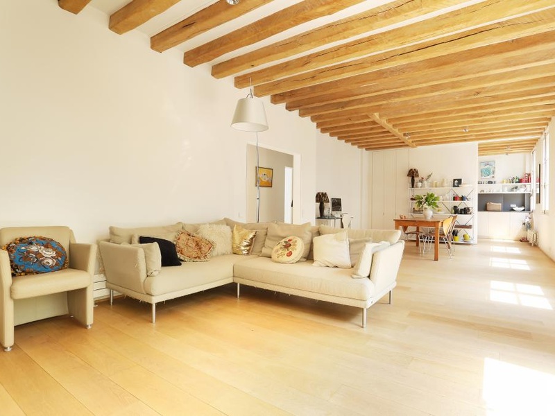 On the second floor of an old building with lift is located completely renovated apartment area of 111 m2. It consists of a double living room of 47 m2 with fitted wardrobes and access to terrace 34.10 m ² facing south, equipped kitchen, 2 bedrooms with a bathroom and a shower room and toilet. The apartment is complete peace and well lit by sunlight. Parking, cellar, security, intercom. Near a bus stop / railway station, subway, taxis.