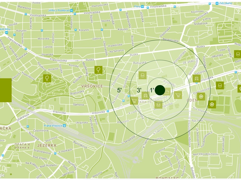 The location of Vršovice belongs to one of the fastest developing neighborhoods today - you can find nursery and primary schools nearby, secondary schools, cafés, restaurants and the non-stop shopping centre Eden. As for sporting activities, there is the TJ Olymp hall, Slavia Praha swimming stadium, sports center Hamr Záběhlice, Golf Club Hostivař, Bohemians 1905 stadium, and the modern Synot Tip Aréna. Public transport stops are located within walking distance and offer excellent access to the city center and connection to the neighbouring Vinohrady. All services of everyday nature already within the residence.
