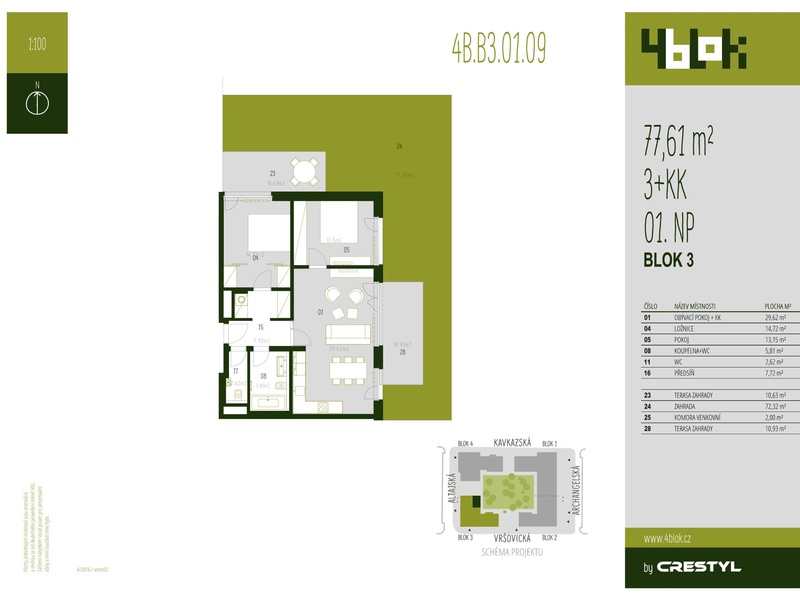 New apartment with terrace and garden sized 72 m2 situated on the ground floor of an unconventional residential complex in a highly attractive location on the border of Vršovice and Vinohrady. The project offers a pleasant enclosed private residences, private park in the courtyard providing beautiful views of the greenery and space to relax, the latest energy-saving technologies, broad civic amenities in the vicinity and easy access to the city center.