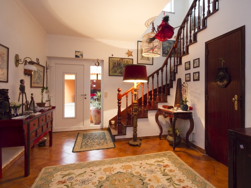On the upper level one en-suite bedroom, two bedrooms, one with a terrace with unique views to the slopes of Malveira da Serra, and one bathroom.