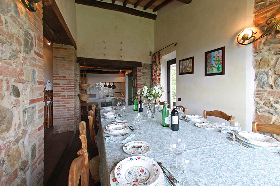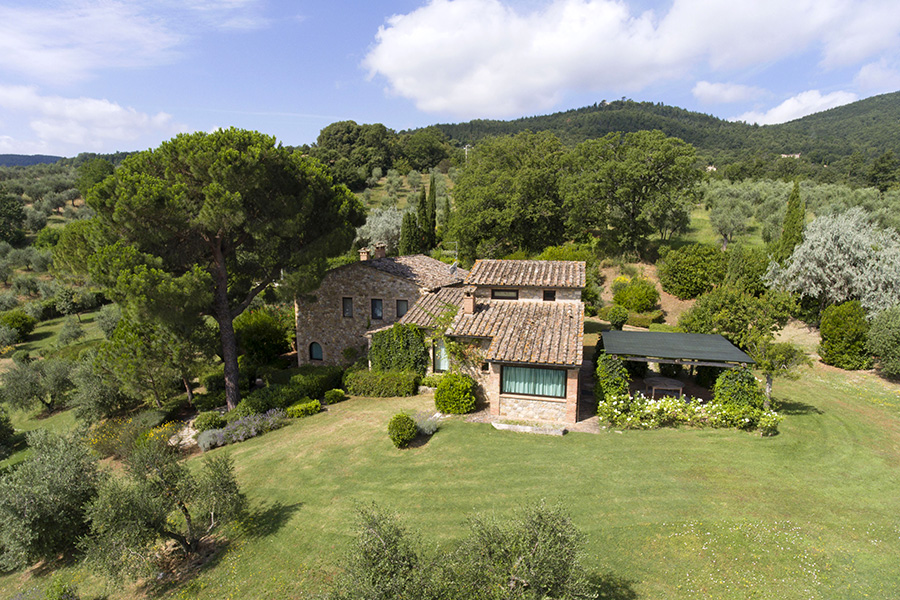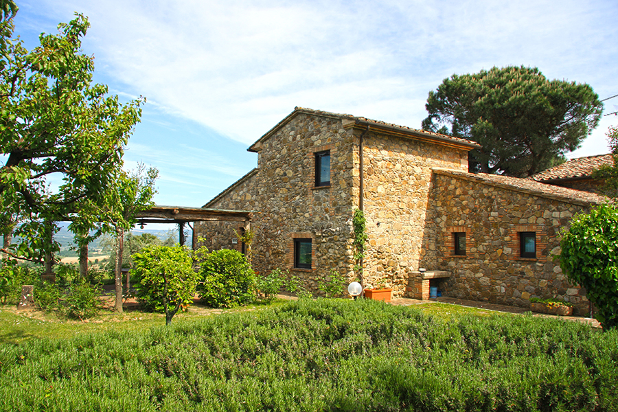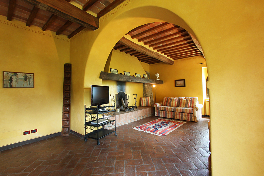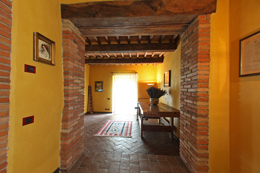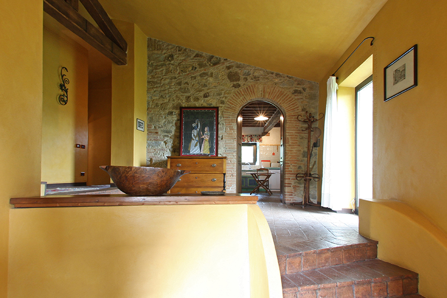 The farmhouse for sale is in an excellent ‘move in’ condition. Externally there are stone facades while internally there are the original terracotta floors and wooden beamed and terracotta tiled ceilings. There are several interior exposed stone walls. The garden, which is one of the main features of the property, has prestigious plants, fruit trees and a unique view of the Tuscan countryside. The garden has always been well maintained giving the property added value. The swimming pool has been created within a natural setting.