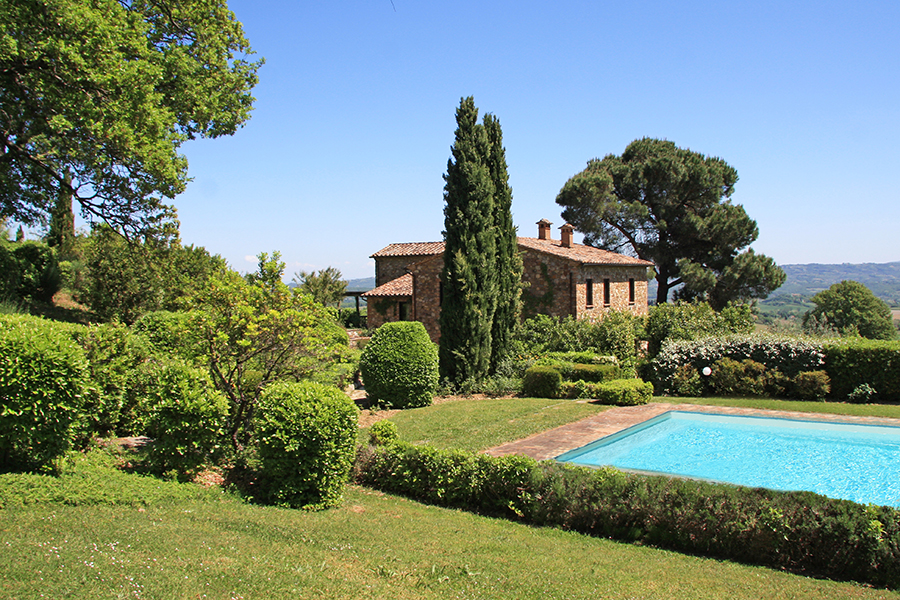 A prestigious farmhouse for sale in Tuscany, in the municipality of Cetona and only a few hundred metres from the centre of the small village of Piazze. This property has been elegantly and carefully restored and is about 410sqm in size on four levels. There is also a fabulous swimming pool as well as a landscaped garden of 6,800sqm.
