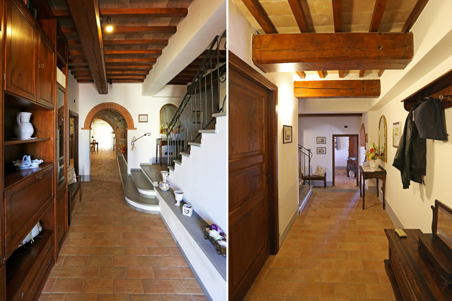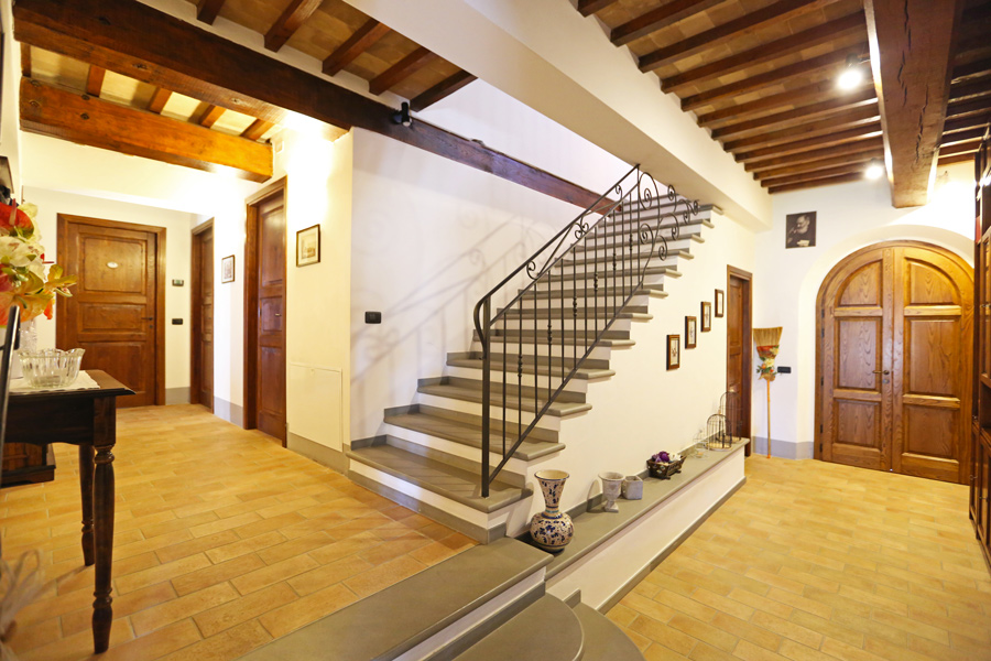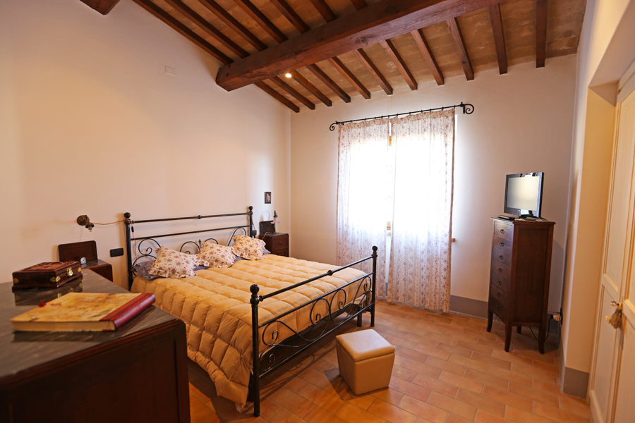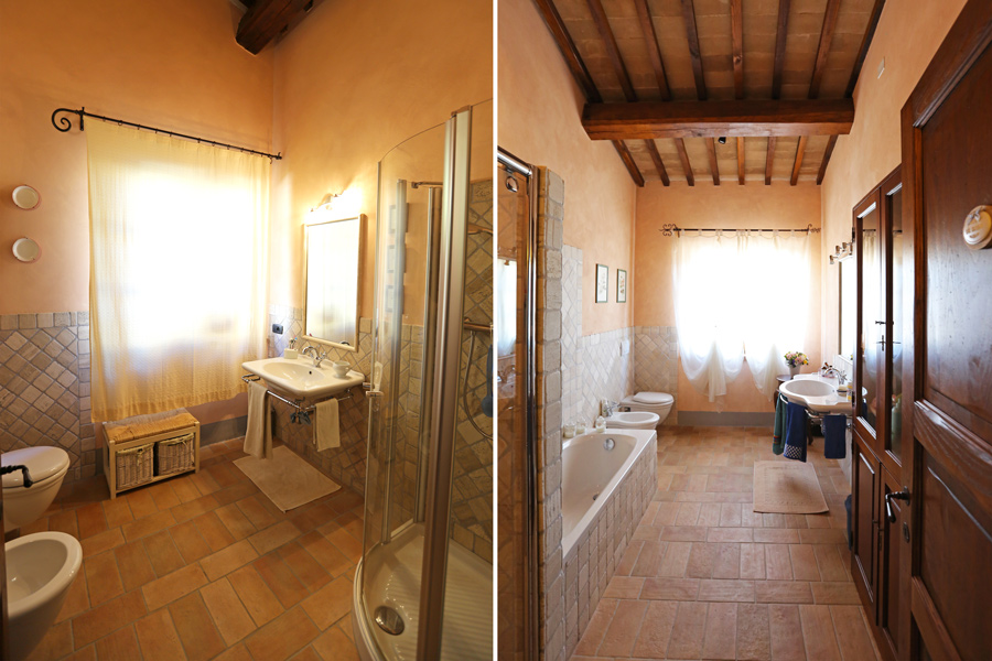 On the first floor, there is a sleeping area with 3 double bedrooms and 2 bathrooms, one is en suite. The loggia, accessible form the master bedroom, overlooks the Umbrian countryside.