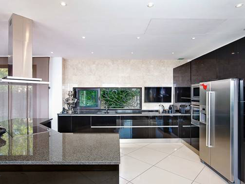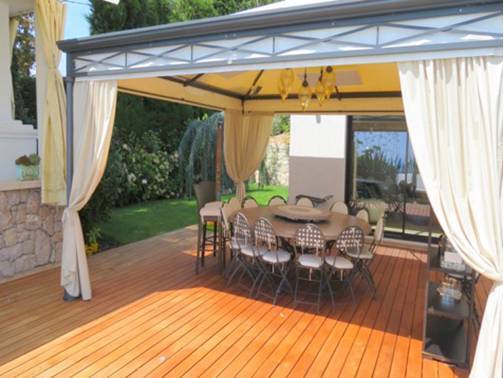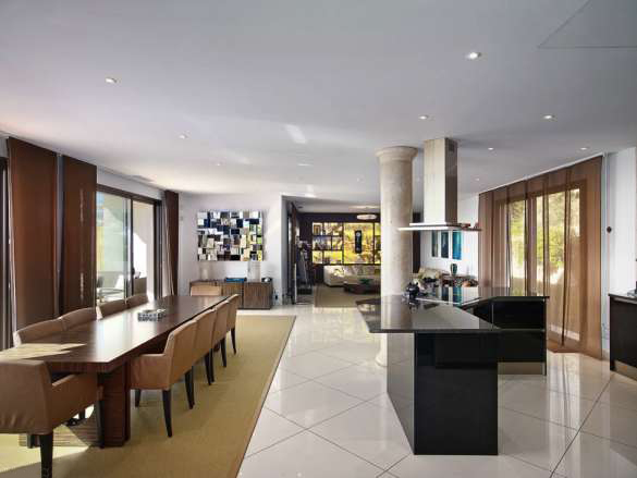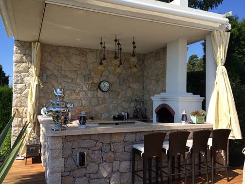 • Large dining room with open-plan fitted kitchen opening onto a terrace with sea view • Summer kitchen with bar and pizza oven