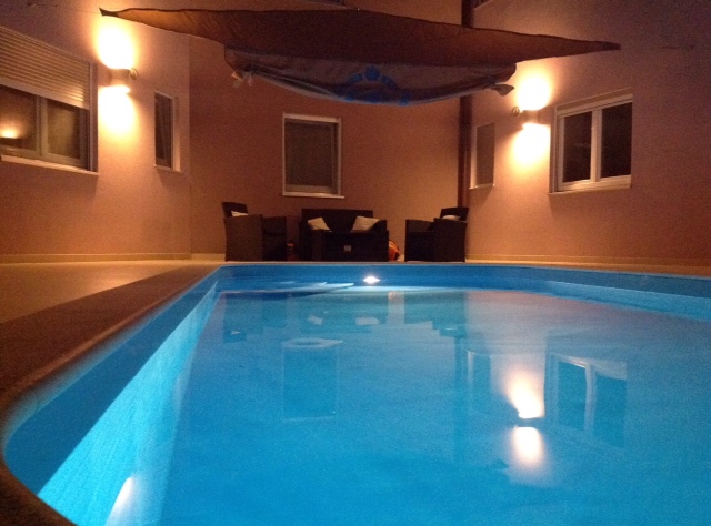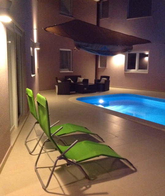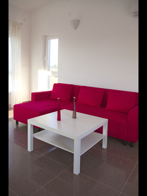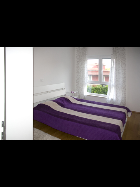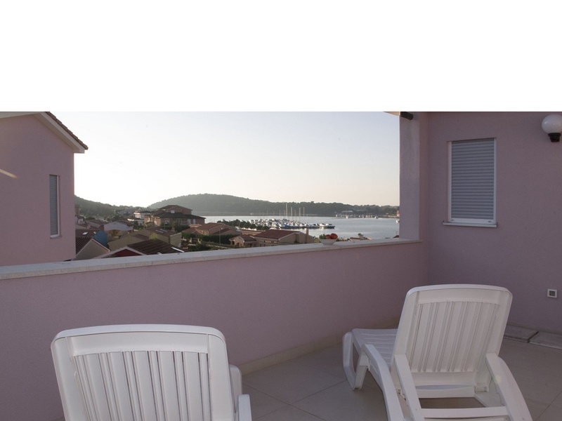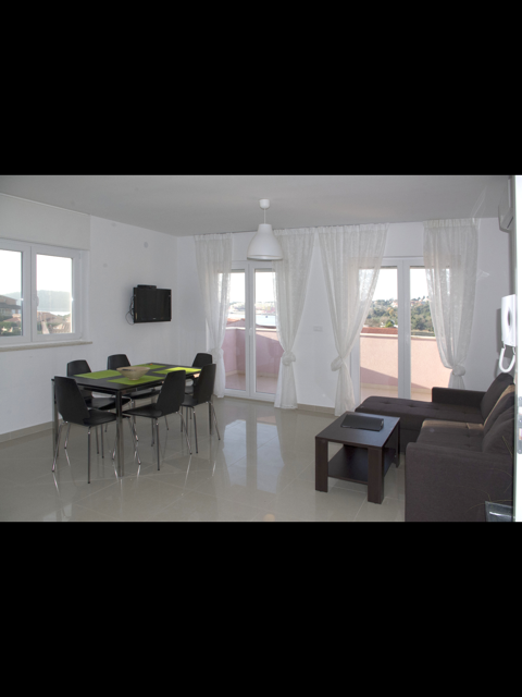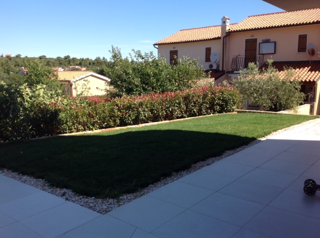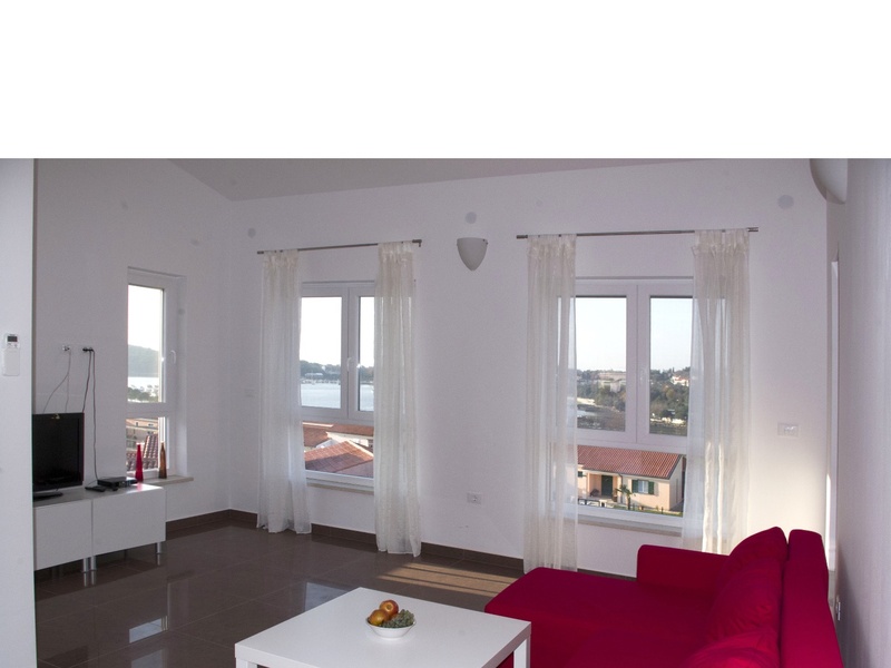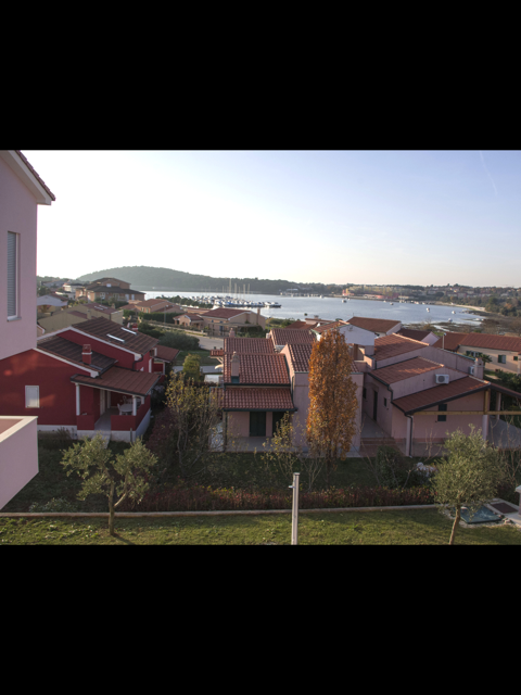 На первом уровне апартаментов находятся кухня-гостиная с балконом, где открывается великолепный вид на море, 2 спальни, 1 ванная и ещё один санузел со стиральной машиной. На втором уровне апартаментов располагаются просторная комната с отдельной ванной комнатой, видовой большой террасой на море(20 кв.м.), а также ещё дополнительная хоз.комната. Апартаменты полностью меблированы, оборудованы электрожалюзями, бытовой техникой. В доме имеется спутниковое телевидение и беспроводной интернет. Во дворе дома имеется роштиль и бассейн 30 кв.м., который оснащён системой автоматической очистки, газон с автополивом. Оба этажа имеют прекрасный вид на море. На территории дома располагается большая парковка. Расстояние до моря 100 метров. Поблизости находятся два пляжа, марина, магазины, банк, кафе и рестораны с развлечениями, автозаправка и прокат байков и велосипедов -все это в 500 метрах от объекта. Расстояние до г. Пула 3 км.